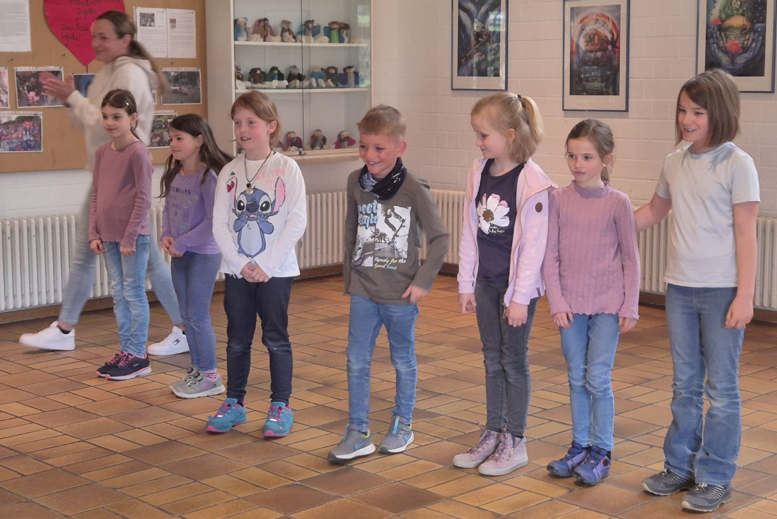 Nach dem Workshop fanden sich die restlichen Klassen der Grundschule sowie interessierte Eltern in der Turnhalle ein, um einer Seilspring-Vorführung der Drittklässler zuzuschauen. Beim anschließenden freien Springen konnten nun auch alle anderen Anwesenden die Seile ausprobieren und das Interesse am Seilspringen entdecken.