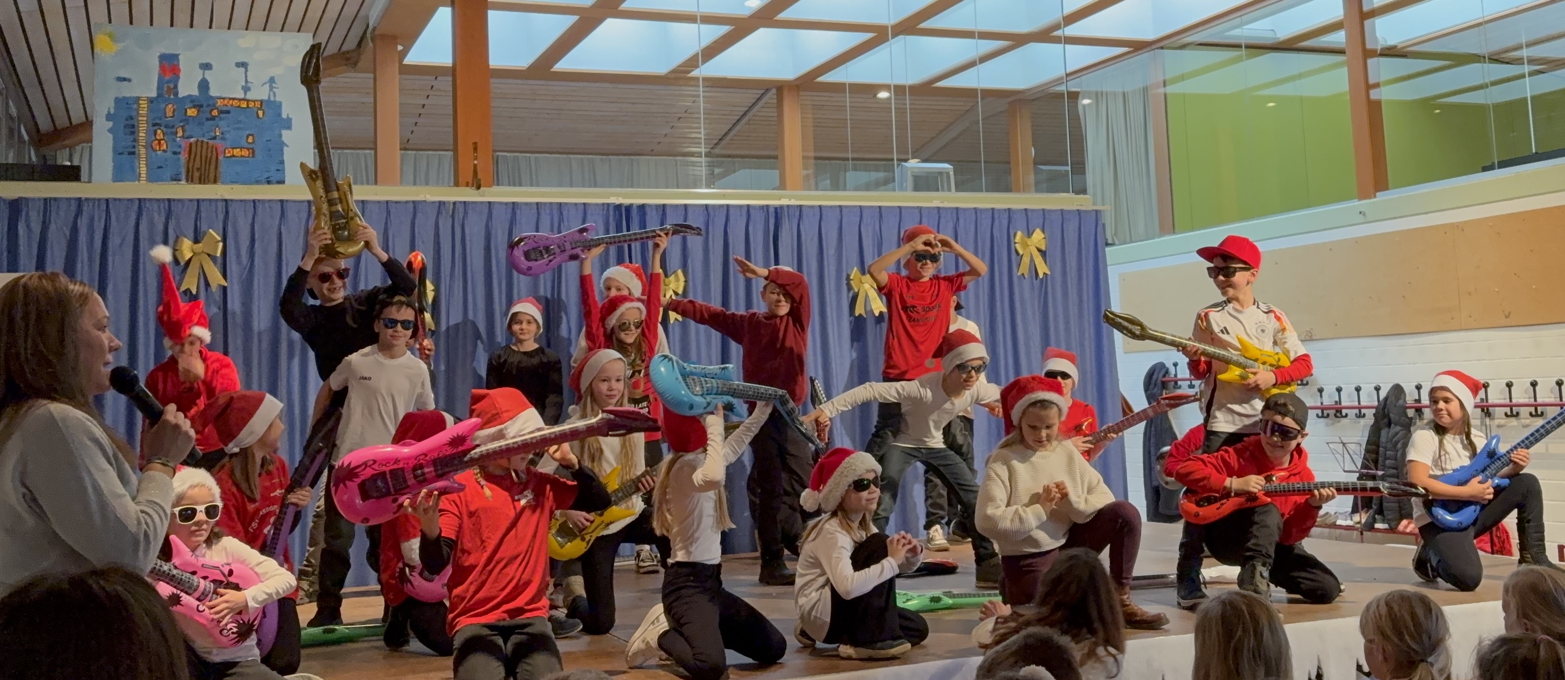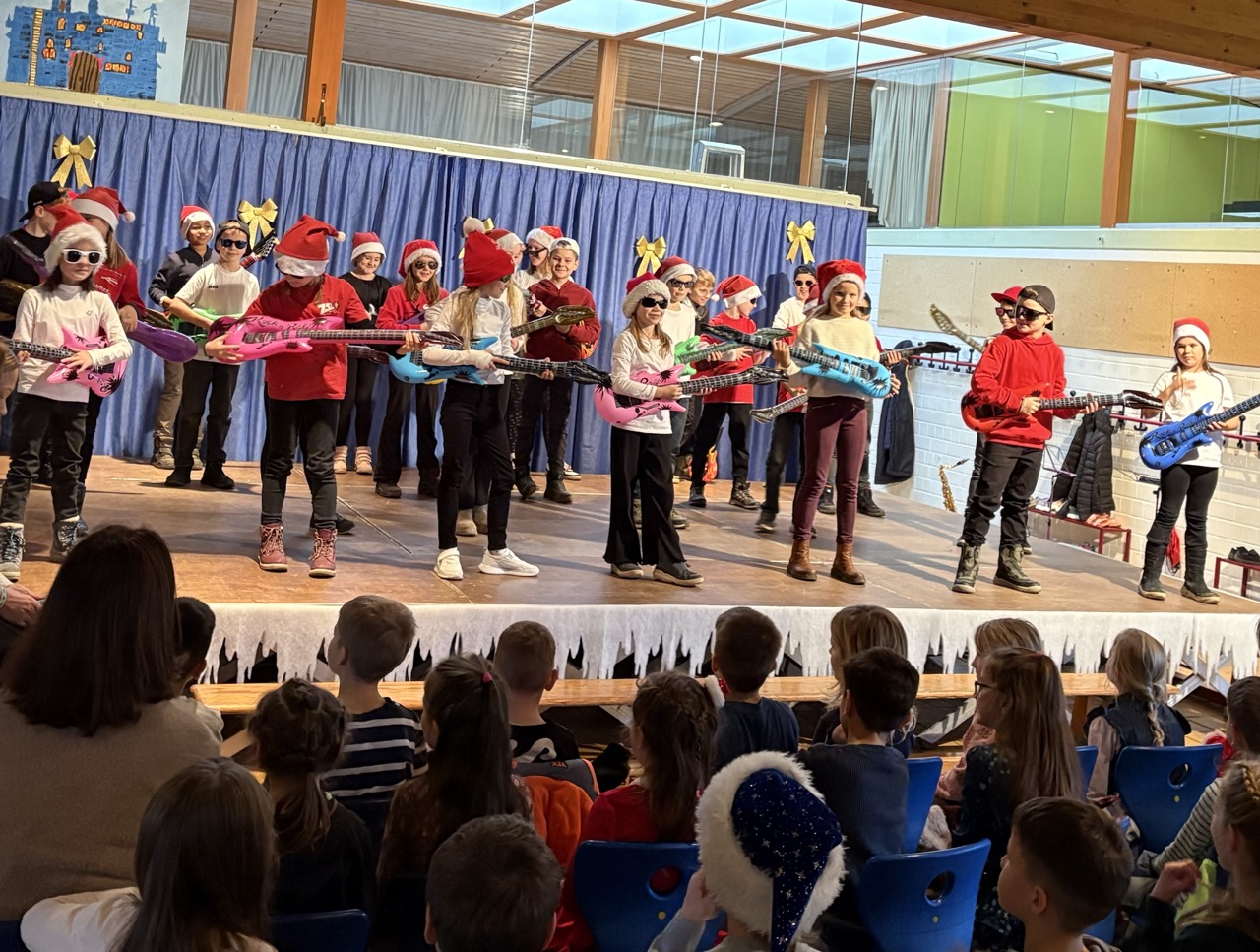 Es wurde gesungen, musiziert, getanzt und Gedichte wurden vorgetragen. Die Klassen zeigten mit viel Mut und Freude, was sie vorbereitet hatten. Besonders schön war zu sehen, wie aufmerksam die Kinder einander zuhörten und sich gegenseitig mit Applaus unterstützten.