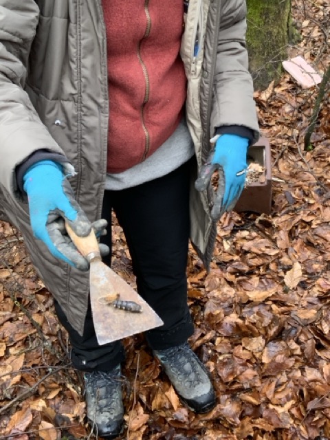 Beim Graben in der Erde entdeckten wir Regenwürmer, Pilzgeflechte und andere kleine Lebewesen. Herr Häffner erklärte uns, wie wichtig der Waldboden für das Leben im Wald ist: Er speichert Wasser, bietet Lebensraum für unzählige Kleinstlebewesen und versorgt die Bäume mit Nährstoffen.
