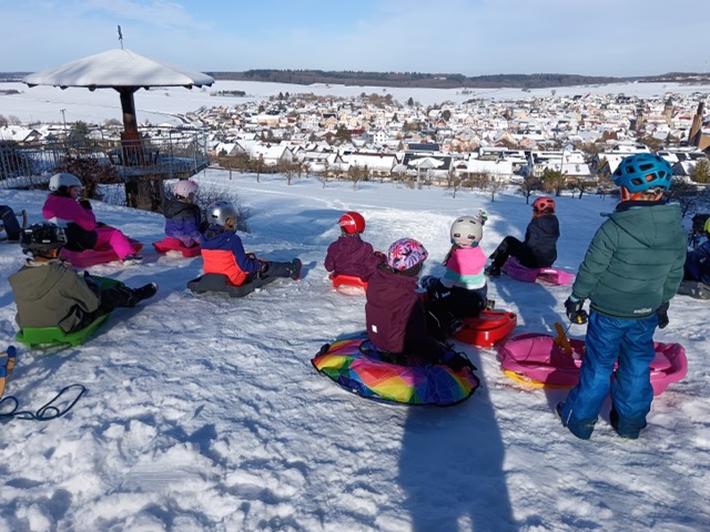 Statt des normalen Sportunterrichts ging es für zwei Schulstunden nach draußen zum Schlittenfahren. Begleitet wurden die Kinder von der Sportlehrerin Frau Meder und der Schulsozialarbeiterin Frau Mach. Mit viel Begeisterung, roten Wangen und jeder Menge Lachen sausten die Kinder den Hügel hinunter. Der Spaß stand dabei klar im Vordergrund – und die Bewegung kam natürlich auch nicht zu kurz.